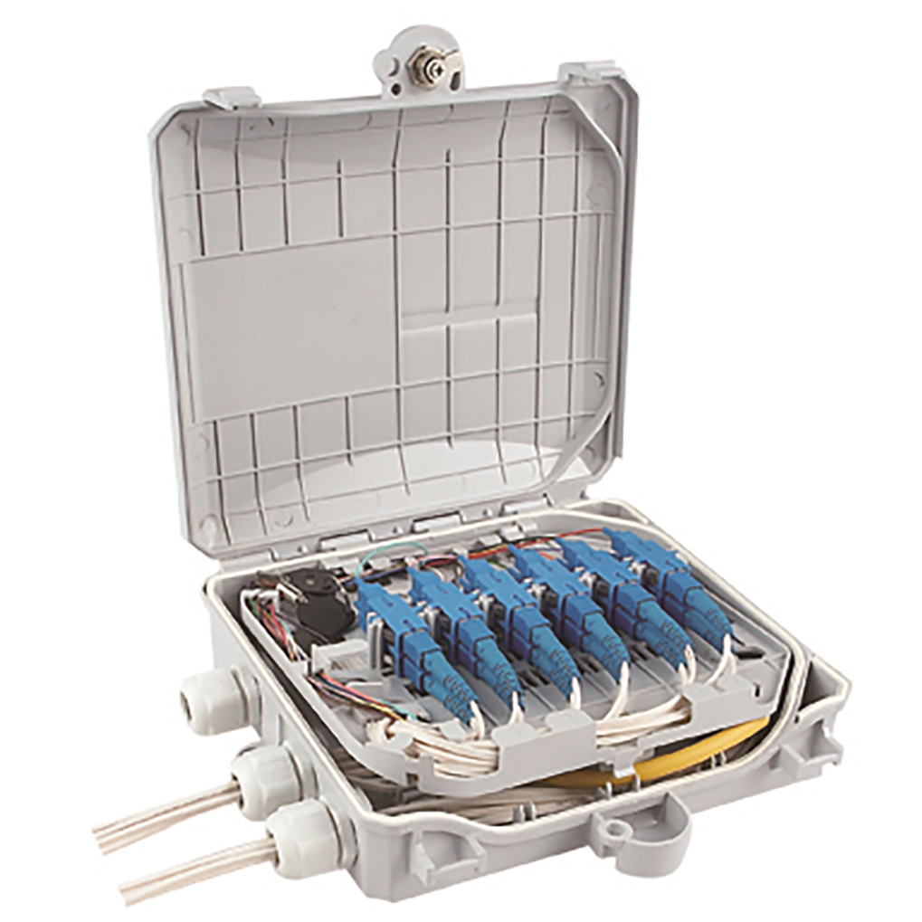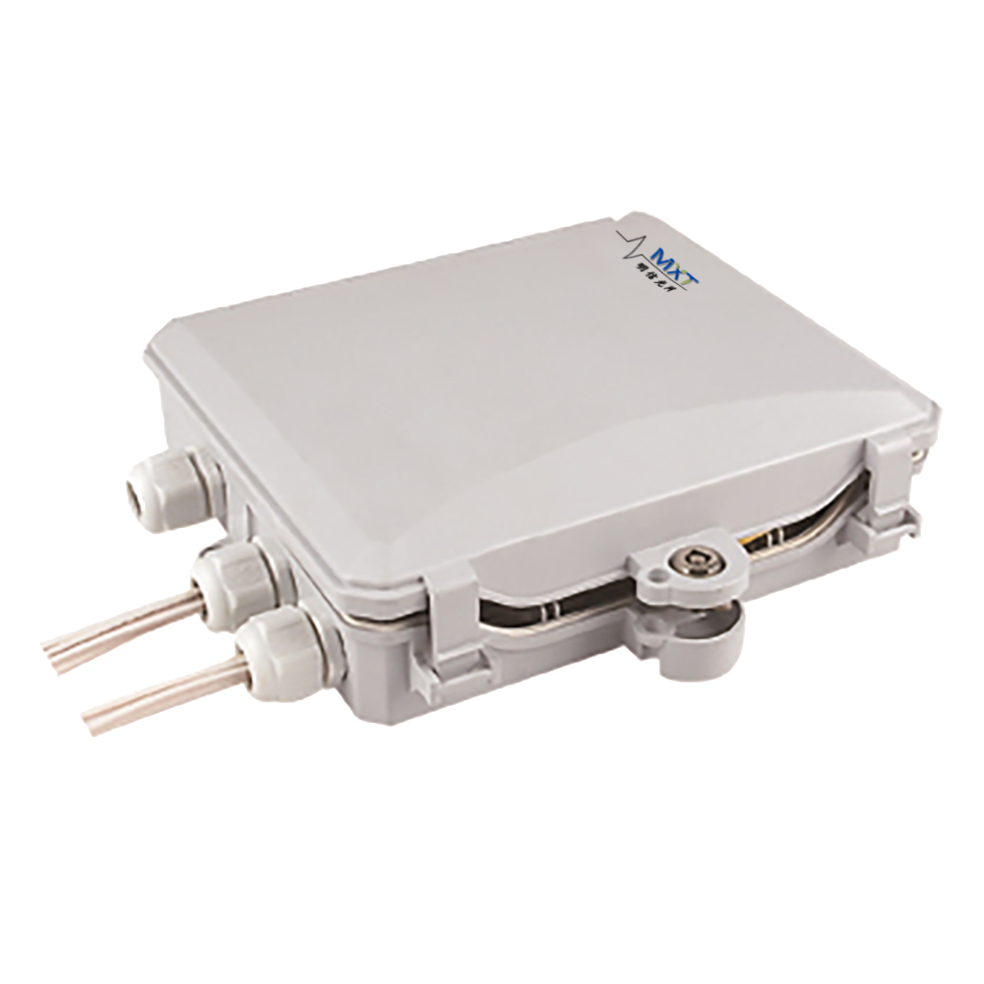 Outdoor fiber optic distribution box is available for the distribution and terminal connection for various kinds of optical fiber system, especial suitable for mini-network terminal distribution, in which the optical cables,patch cords or pigtails are connected, PC plastic terminal box, 2 input cable ports 2 output cable ports, PLC splitter can be loaded inside, suitable for indoor and outdoor wall-mounted and pole mounted using.