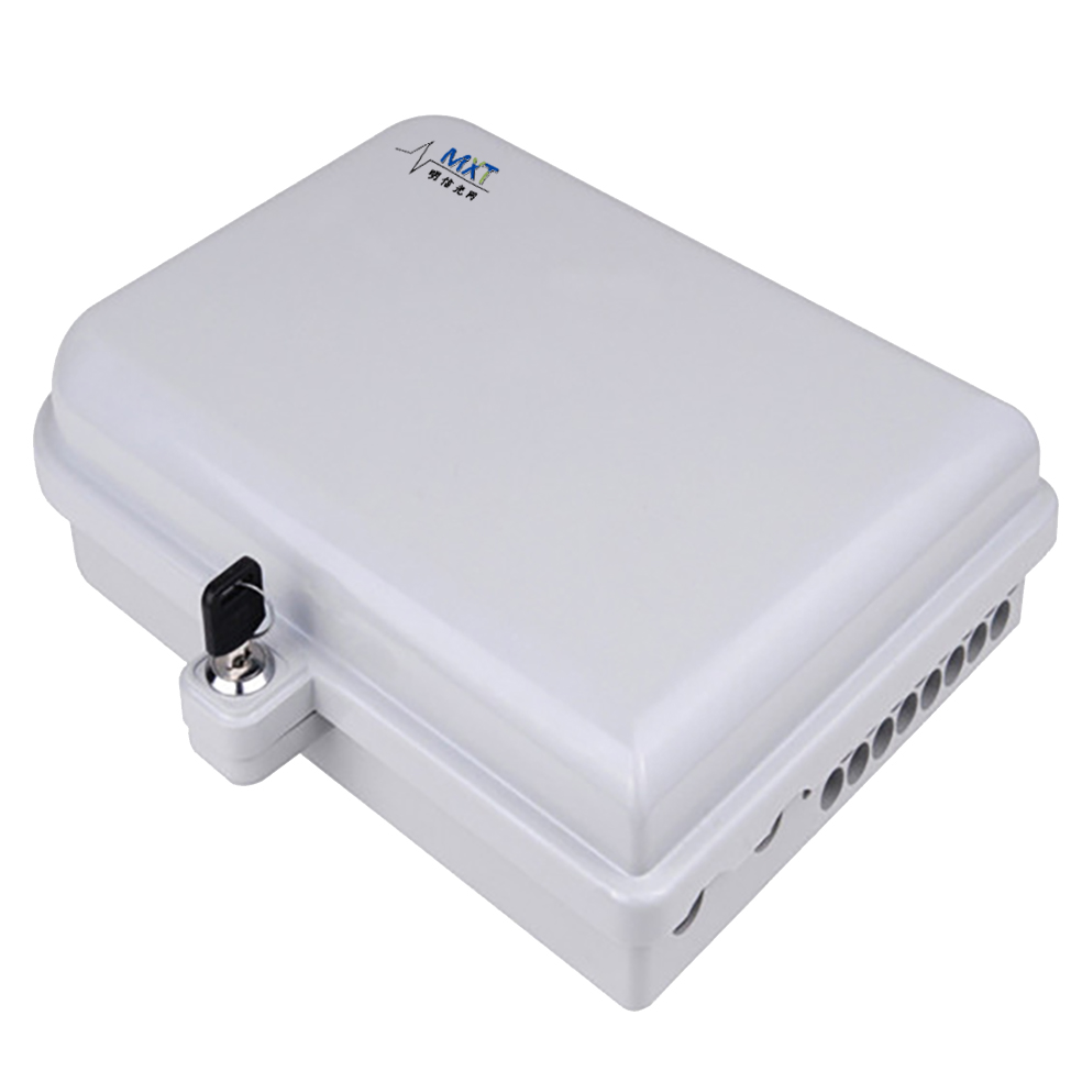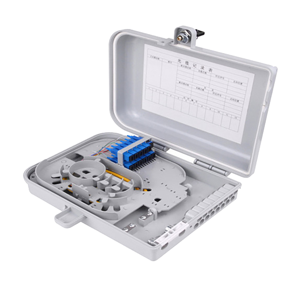 Outdoor fiber optic distribution box is available for the distribution and terminal connection for various kinds of optical fiber system, especial suitable for mini-network terminal distribution, in which the optical cables,patch cords or pigtails are connected, PC plastic terminal box, 2 input cable ports 12 output cable ports, PLC splitter can be loaded inside, suitable for indoor and outdoor wall-mounted and pole mounted using.