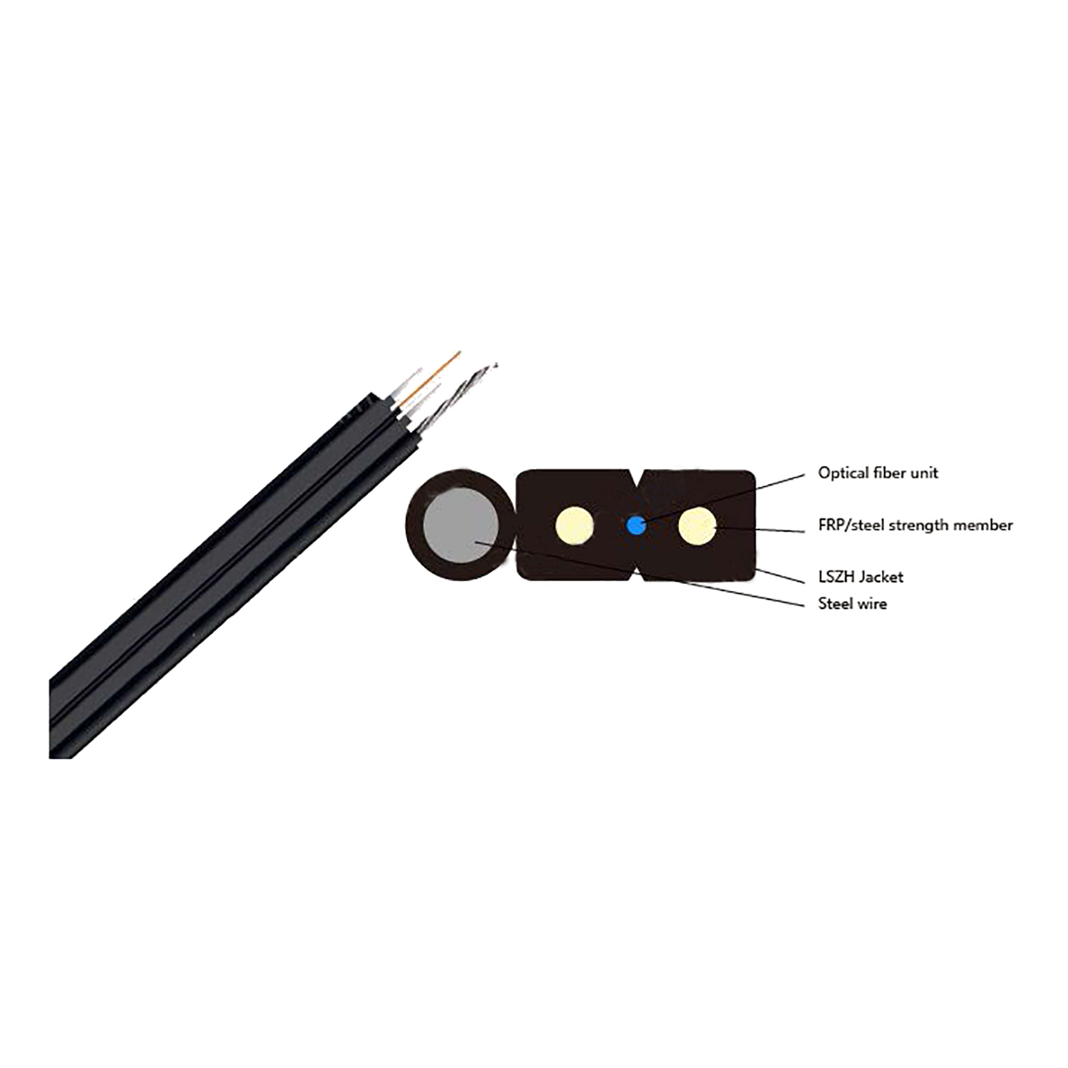 Introduction | The optical fiber unit is positioned in the center. Two parallel Fiber Reinforced Plastics (FRP) are placed at the two sides. A steel wire as the additional strength member is also applied.Then, the cable is completed with a black or color LSZH sheath. |