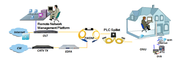 EPON technology is a kind of emerging technology which takes advantage of PON technology and Ethernet technology also is a kind of point to multi-point network technology. OLT through the passive optical network to connect multiple ONU with single fiber bidirectional technical can rarely used fiber resources to meet the operators of the multi-user access requirements.It adopts single fiber WDM technology with downlink wavelength 1550nm and 1490nm, uplink wavelength 1310nm . It only needs one-core fiber to transmit data and CATV service.