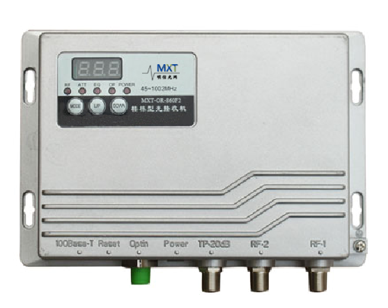 MXT-OR-860F2 FTTB optical receiver is a kind of product which is designed for CATV network FTTB application. With small and compact construction, easily to install; Featured with AGC function to make output level keep constant and have higher performance index when input optical power is -8~+1dBm. It also can realize to control output level and slope of the equipment through network management system remotely and completely, to make CATV network project debugging very conveniently. At meanwhile this product can transmit digital and analogue signal. It is the main product in present FTTB network system construction.