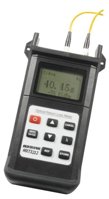 MXT3308 handheld return loss tester is used to measure the return loss in the field fiber optic linking, in order to adjust the quality of the optic fiber end-face, and to make sure the fiber optic communication is in good condition. This MXT3308 handheld return loss tester can realize measurement of Return Loss, Insertion Loss, Output power, and also can be used as the laser source. Moreover, it has the data storage function of 500 measurement items.